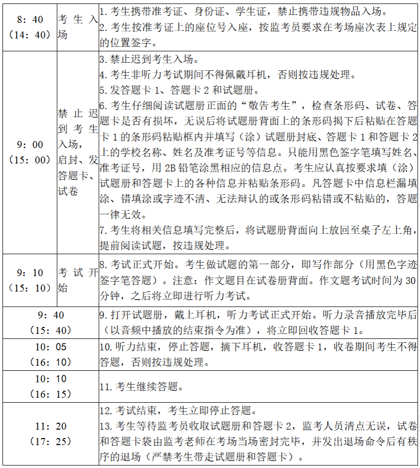 7.英语考试流程(上午时间为四级,下午时间为六级):