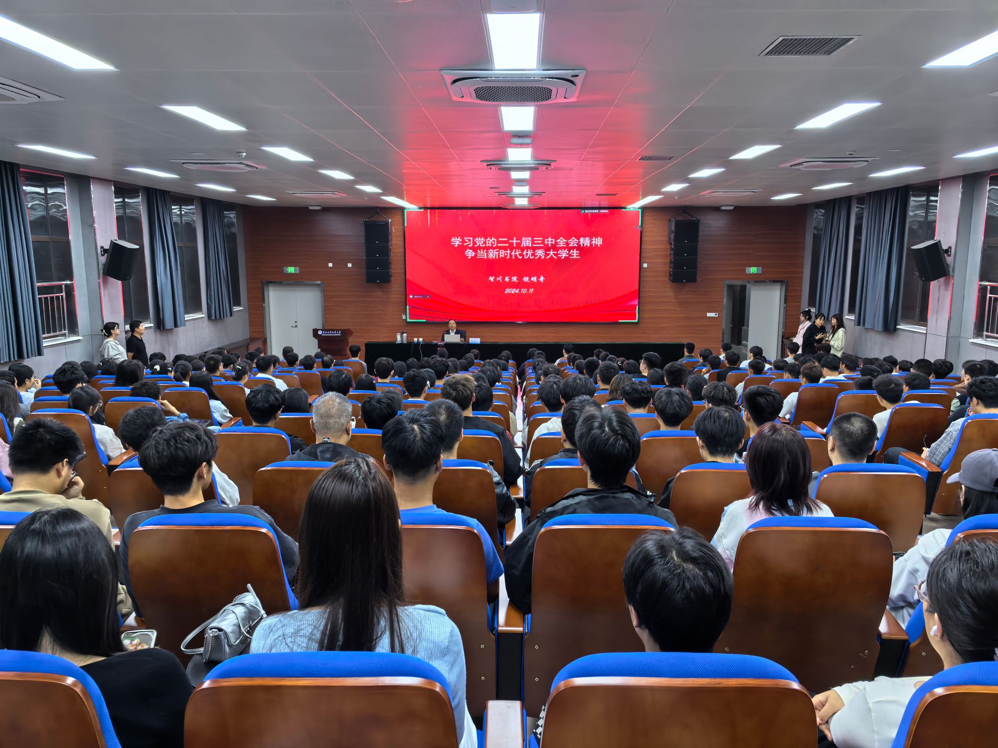 为深入学习贯彻党的二十届三中全会精神,切实推动全会精神在智川书院落地生根,10月11日晚,智川书院举办“心·智”讲坛(第一期)——深入解读党的二十届三中全会精神。智川书院院长饶明奇以“学习党的二十届三中全会精神,争当新时代优秀大学生”为题,为书院广大团员、入团积极分子带来了一场精彩的主题报告。报告会上,智川书院院长饶明奇深入浅出解读了党的二十届三中全会精神,激励智川书院广大学子充分展现华水学子的挺膺担当,积极投身强国建设、民族复兴的火热实践。