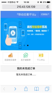 5.在APP首页下方或者“个人中心-我的订单”查看自己提交的报修单,可追踪报修单的处理进度和维修人员的联系方式;
